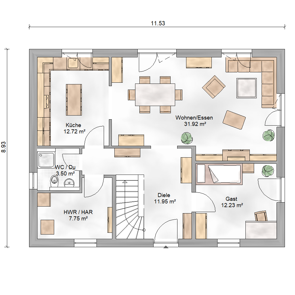 Der großzügige Allrounder mit 156 m2 Wohnfläche lässt in puncto Platz eigentlich keine Wünsche mehr offen. Ob zusätzliches Kinderzimmer, Ankleide, Gast und auch Büro, ist hier alles möglich.
